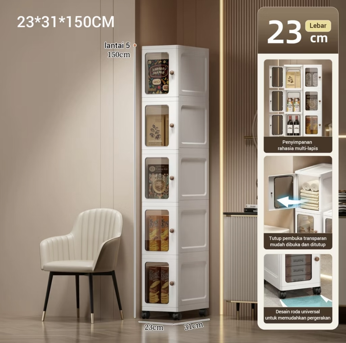 Lemari Plastik Serbaguna 3-5 Laci | Rak Penyimpanan Langsing Hemat Ruang Untuk Kamar