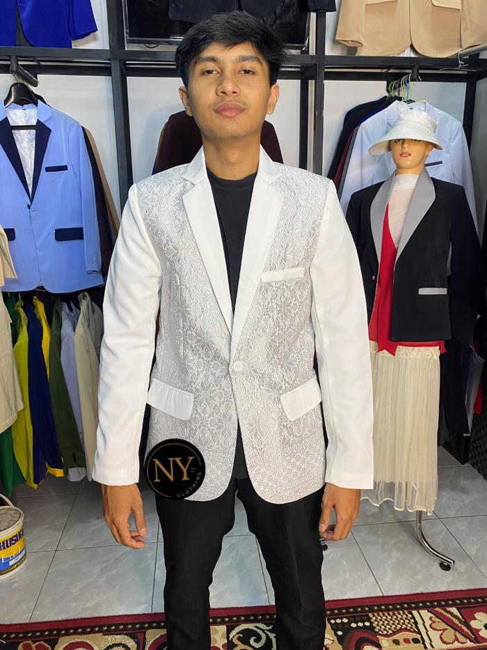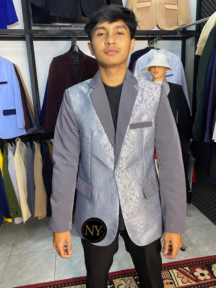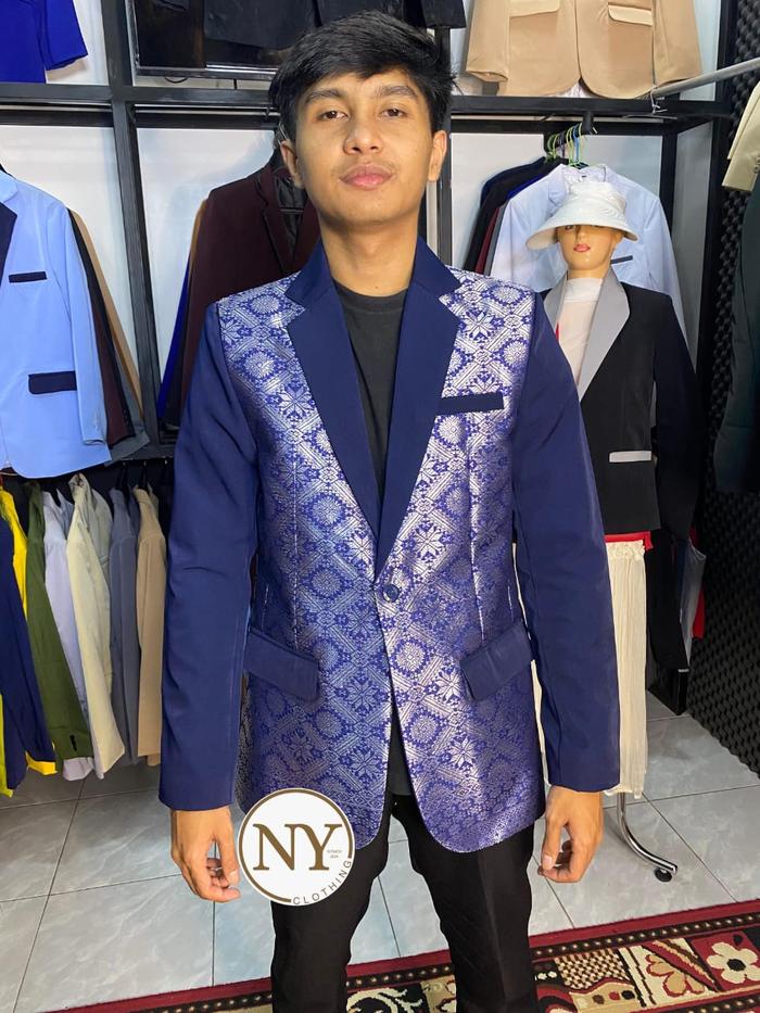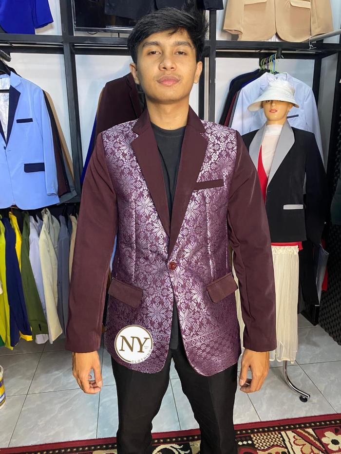 Jas Songket, Blazer Songket, Jas Pria Motif Songket Formal Casual Pengantin Slim - Burgundy, Xs