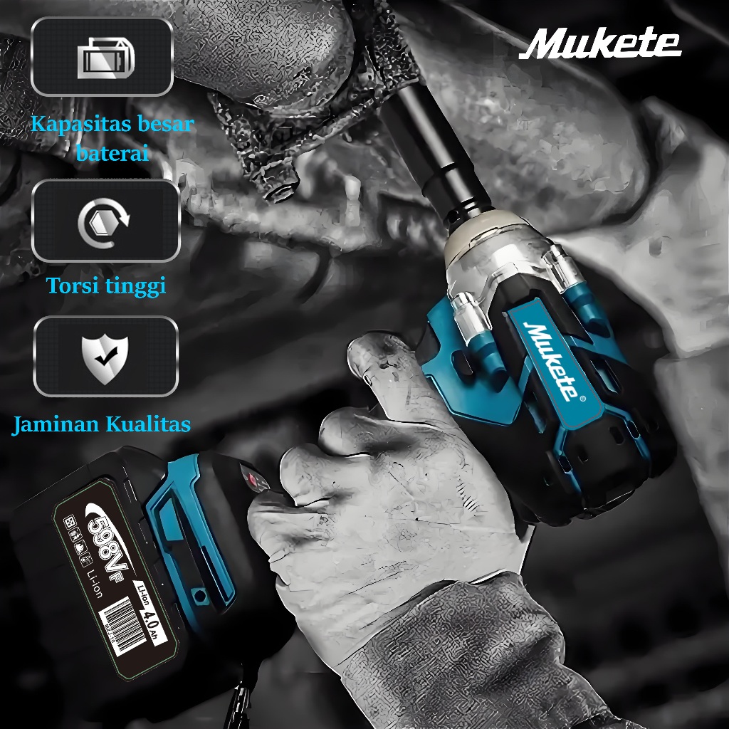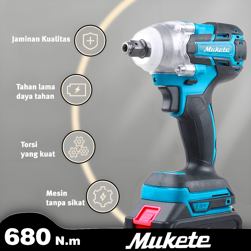 Mukete Impact Wrench Brushless Impek Pembuka Baut Bor Cordless Impact Baterai Impek Baterai 398/598V Bor Baterai untuk B