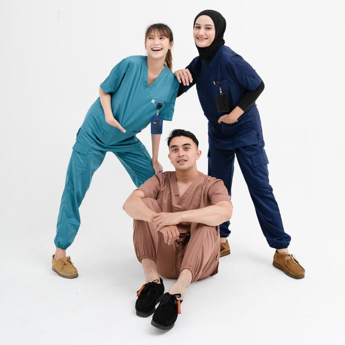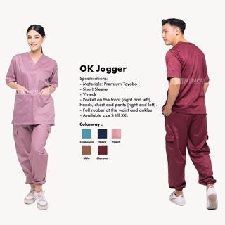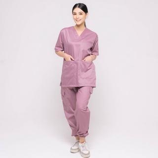 BAJU OK JOGGER | BAJU OK TOYOBO | BAJU JAGA DOKTER - SCRUB MEDIS LENGAN PENDEK - PEACH, S
