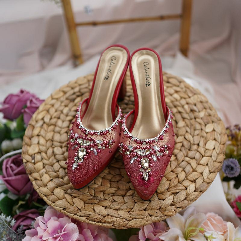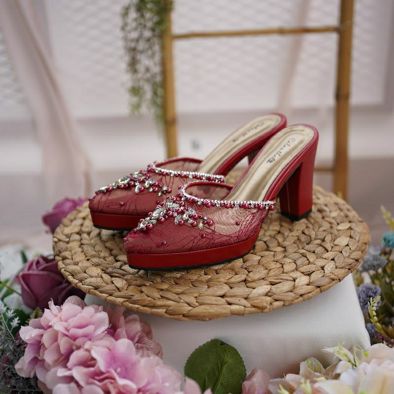 Deu_Calantha Wedding Shoes Sepatu Pesta Wanita Berpayet Lynelle Heels 9 cm Platform 2 cm Insole Empuk