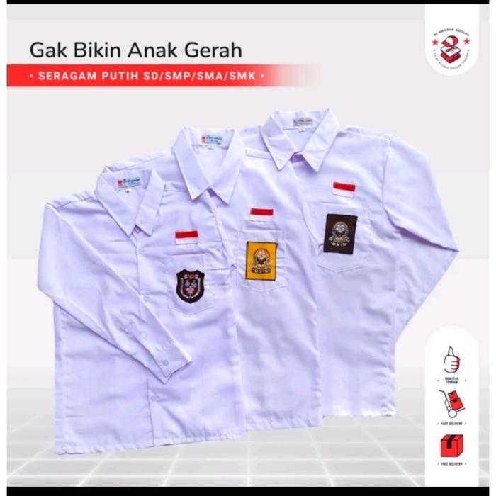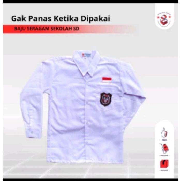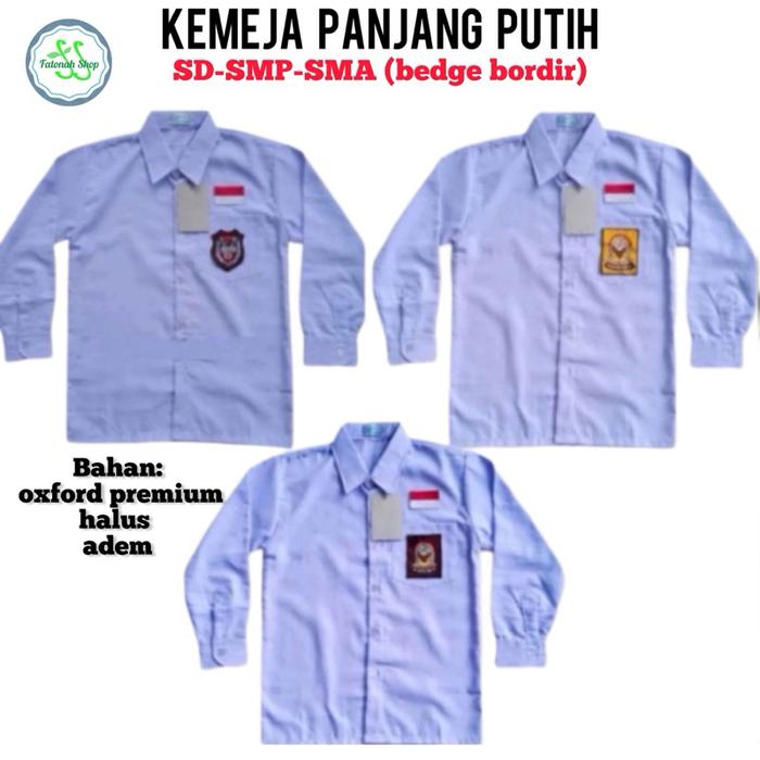 SERAGAM SEKOLAH SD SMP SMA KEMEJA WARNA PUTIH LENGAN PANJANG BAJU SERAGAM KERJA BORDIR WANITA PRIA - (SD) PUTIH PANJANG, SIZE S/7