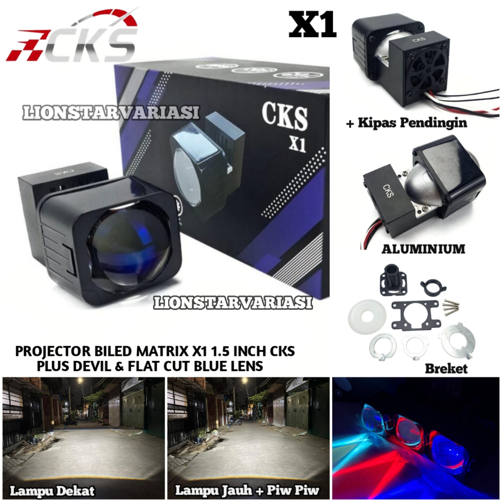 CKS X1 - Projector Biled Matrix X1 1.5 INCH Plus Devil High Low Flat Cut Waterproof Mobil Motor Piw"