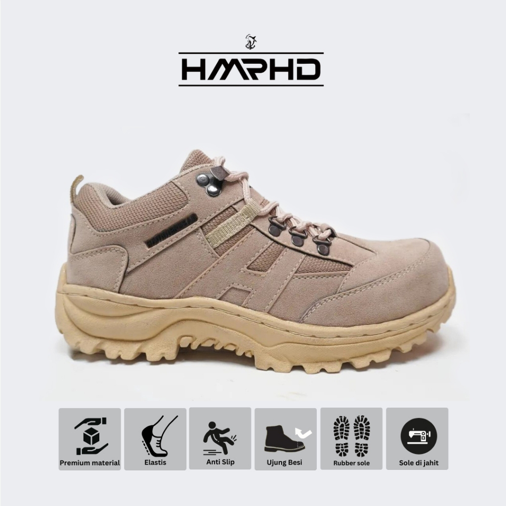 HMRHD Sepatu Pria Safety Boots Hammerhead Low Cream Ujung Besi