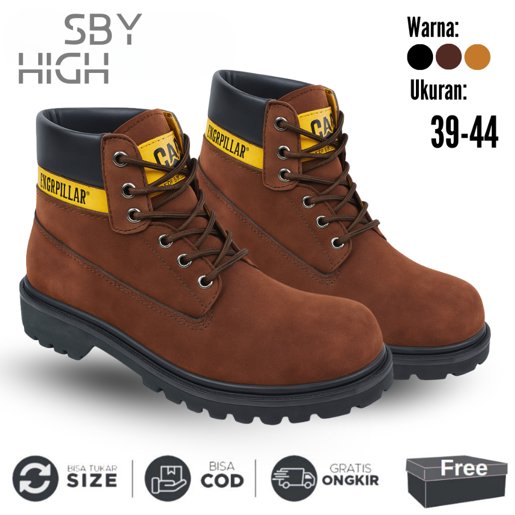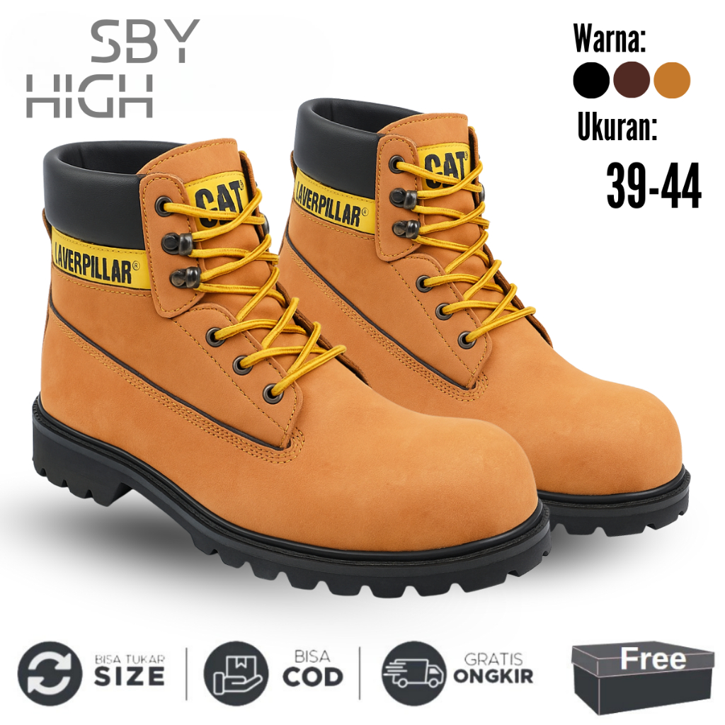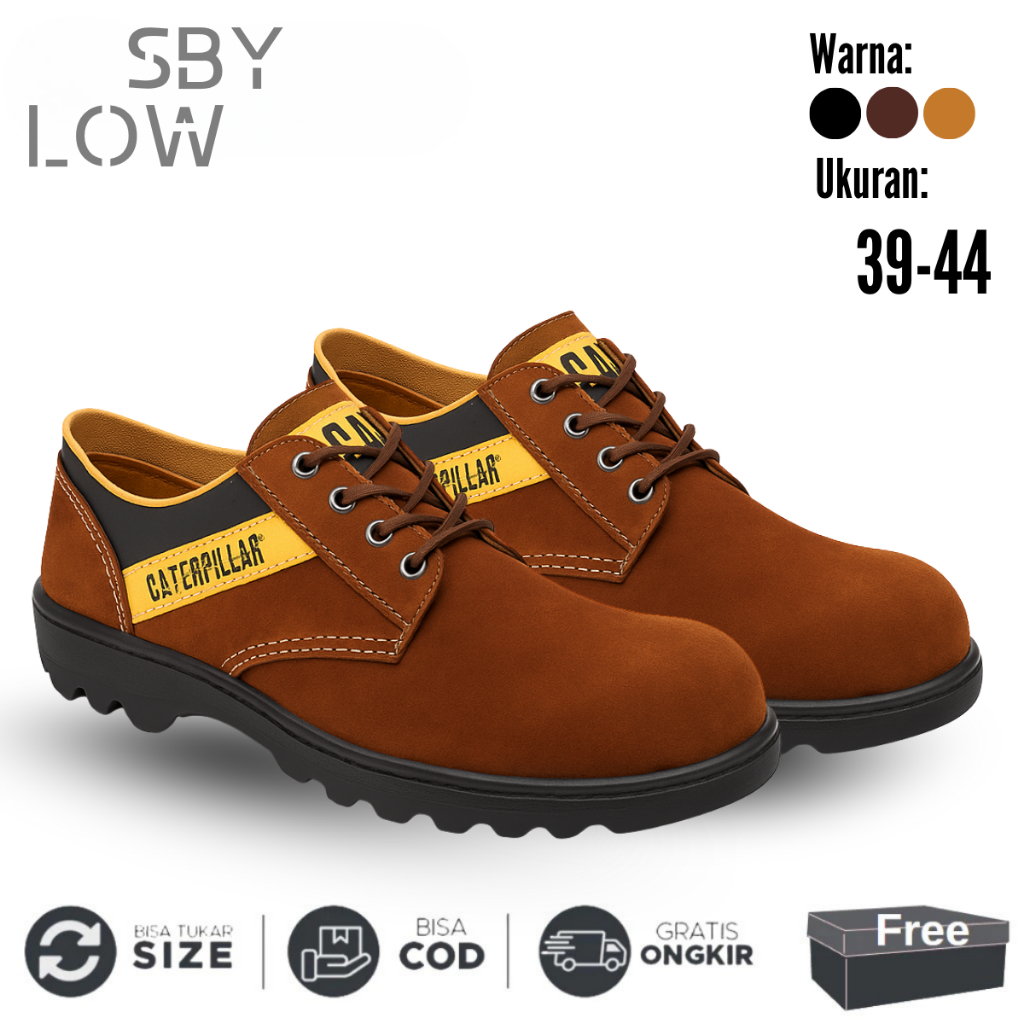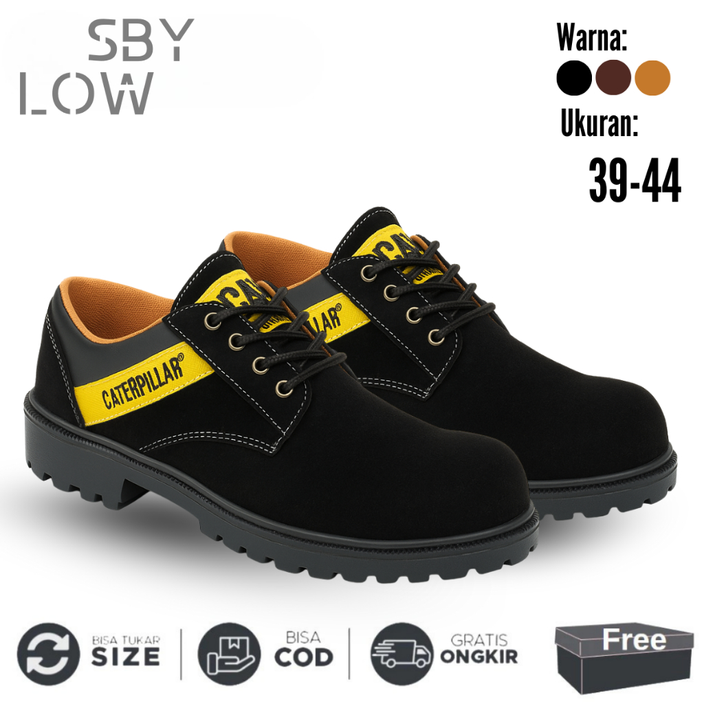 Sepatu Safety Proyek Ujung Besi - Septy Shoes Boot - Septi Kerja Lapangan Kulit Suede Cat Sby Pendek