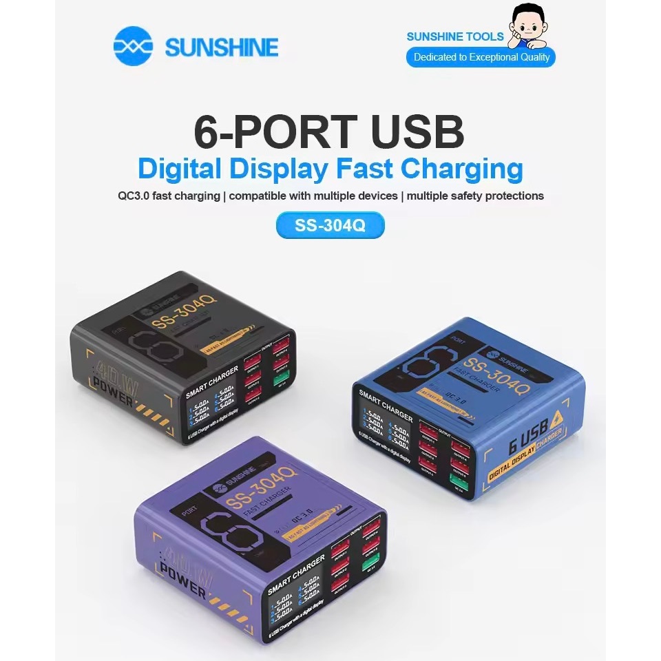 ADAPTOR CHARGER 6 PORT USB SCHEMATIC 40W QC 3.0 FAST CHARGING - SUNSHINE SS-304Q ORIGINAL