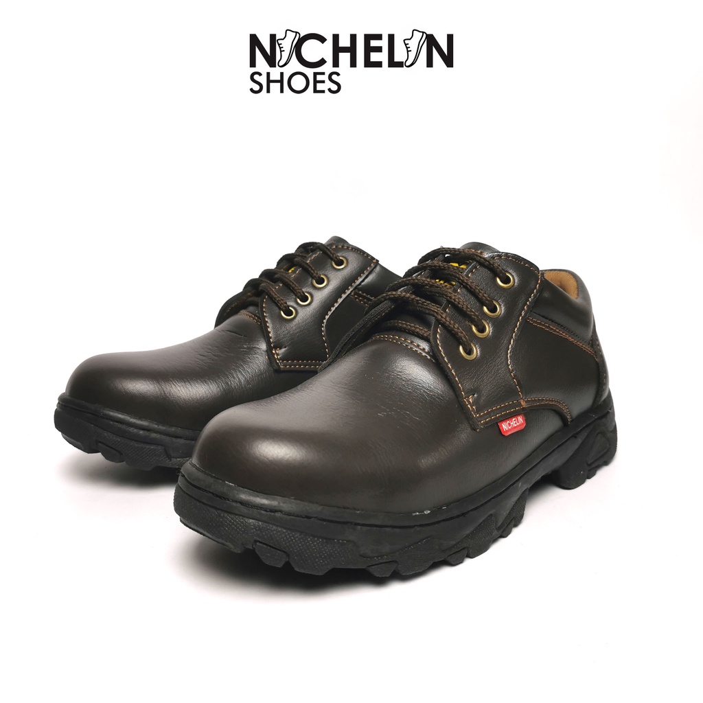 SEPATU SAFTY PENDEK PRIA KERJA PROYEK UJUNG BESI JAHIT KELILING