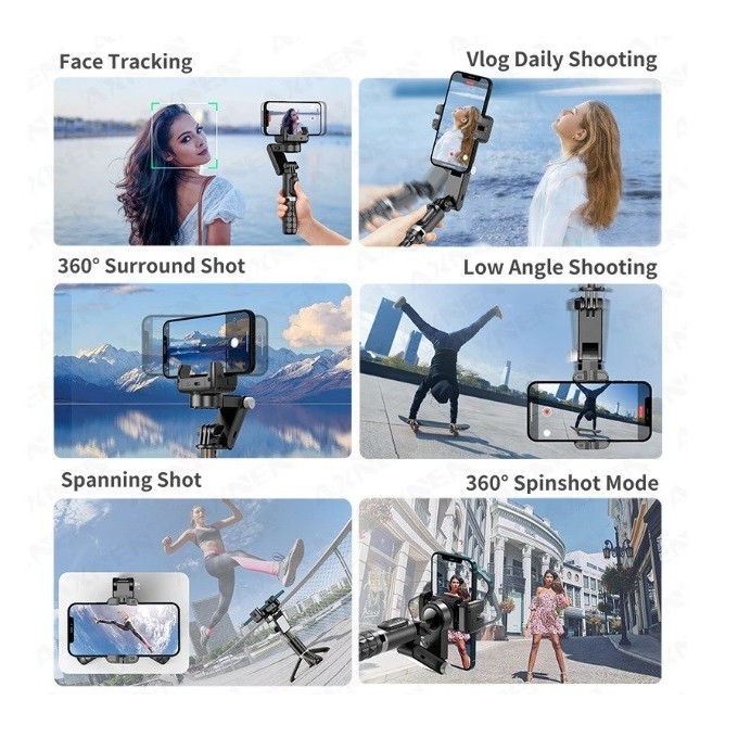 SMARTCOM Gimbal Stabilizer Q18 Face Tracking Selfie Stick Tripod Shooter dengan Lampu Smartphone Handphone