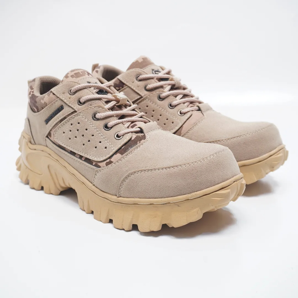 HMRHD Sepatu Pria Safety Boots Oscar Camo Low Cream Ujung Besi