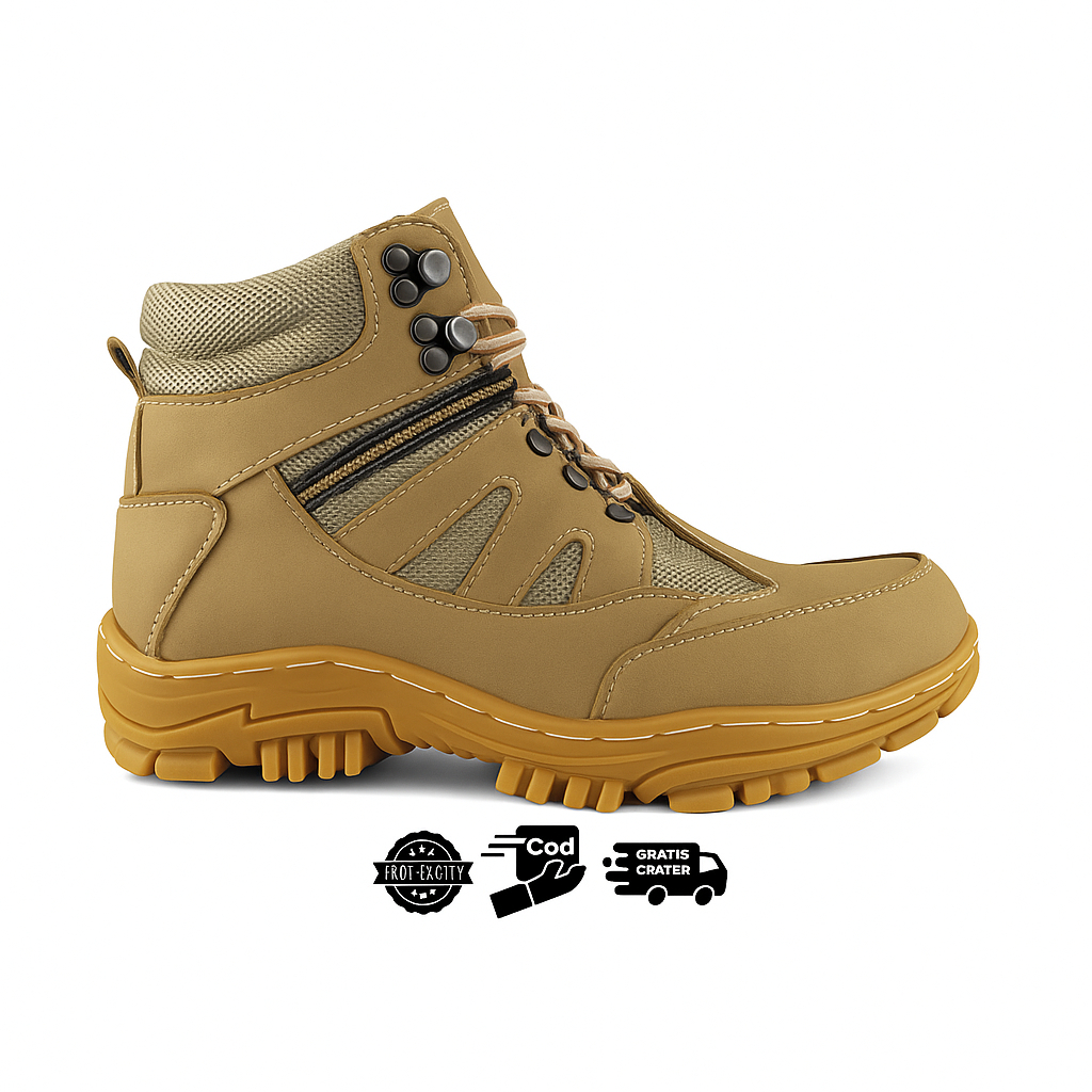 Sepatu Safety Pria Boots Proyek Ujung Besi Septy Shoes Boot - Septi Kerja Lapangan Kulit Sintetis Tali Sepatu Kerja En