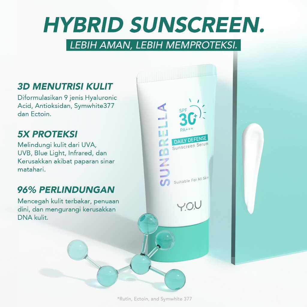 YOU Sunbrella Daily Defense Sunscreen Serum SPF30 Tabir Surya UVA UVB Blue Light Lightweight Skincare Dry Skin [Best Selling]