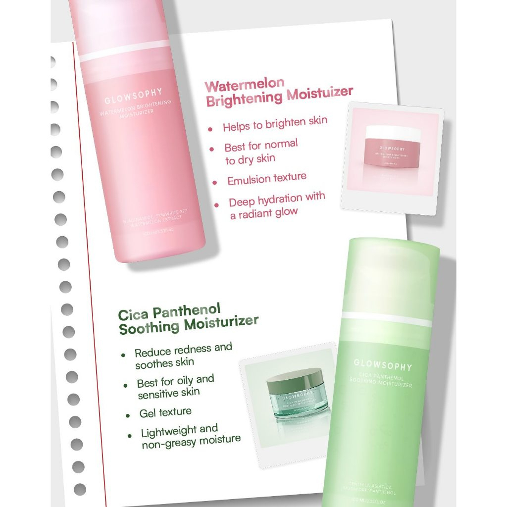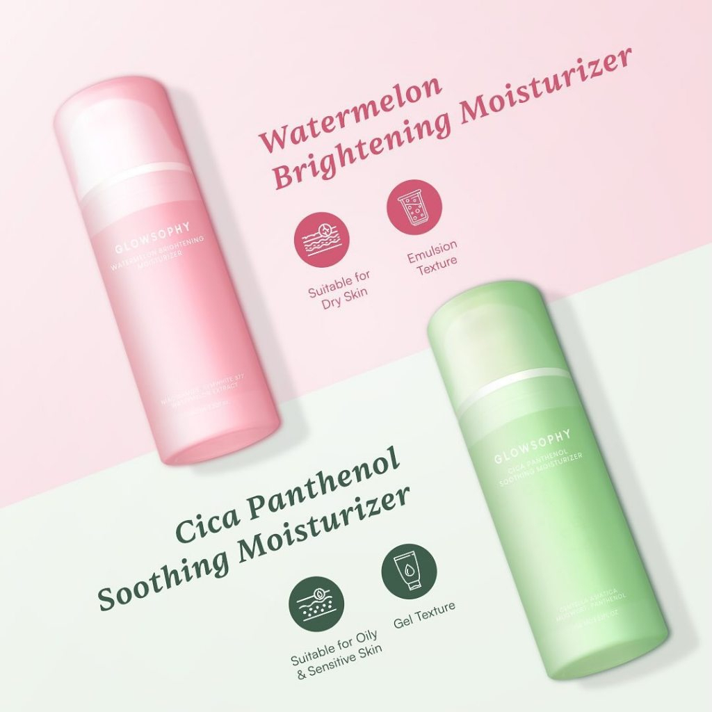 GLOWSOPHY Moisturizer Series 100mL - Centella Soothing Moisturizer - Watermelon Brightening Moisturizer