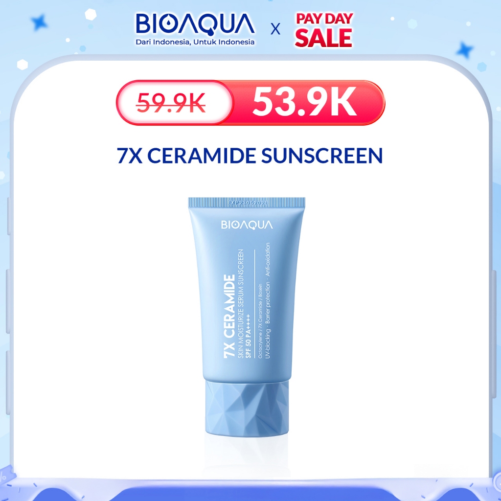 BIOAQUA 7X Ceramide Serum Sunscreen SPF 50 PA ++++ Sunscreen Gel Sunblock Wajah 12H Sun Protection 0 PERSEN Alkohol, Waterproof UV Spot-proof