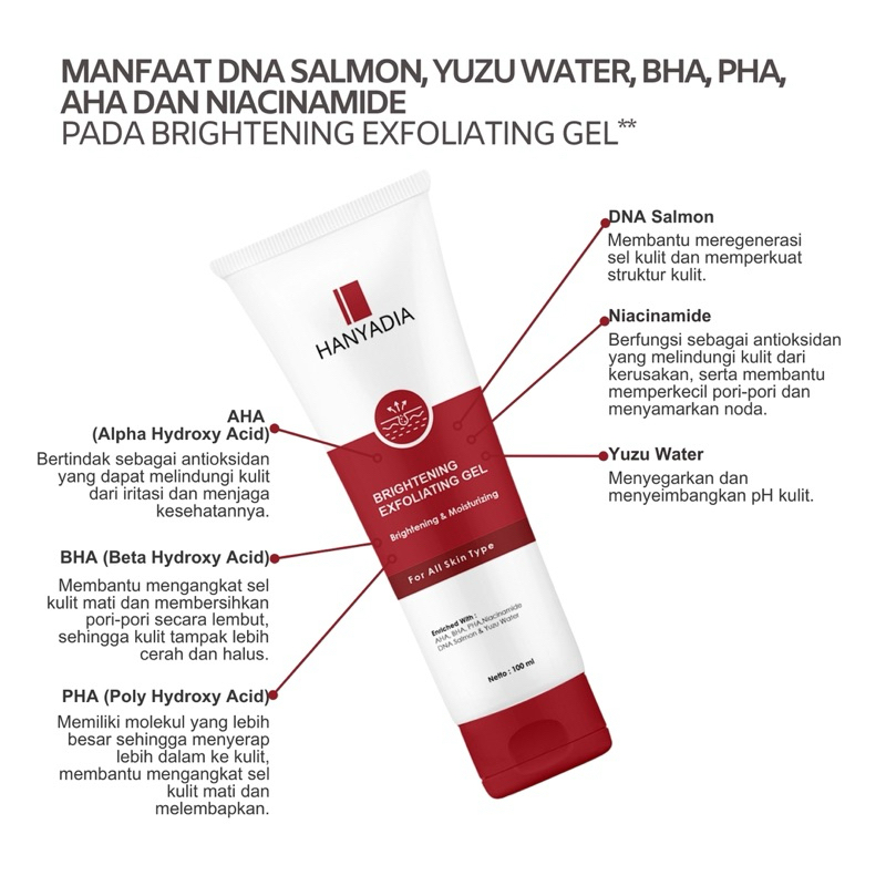 Hanyadia Brightening Exfoliating Gel / Gel Pengangkat Kulit Mati & Perontok Daki Kulit Aman Untuk Ibu Hamil Dan Menyusui