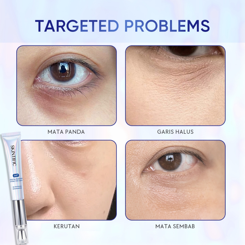SKINTIFIC - 360° Crystal Massager Lifting Eye Cream 20ml | Puffy Eyes Mata Panda Dengan Massager Getar Eyecream Eye Serum Retinal 3D Peptides Niacinamide Caffeine 3-IN-1 Anti-aging Cream