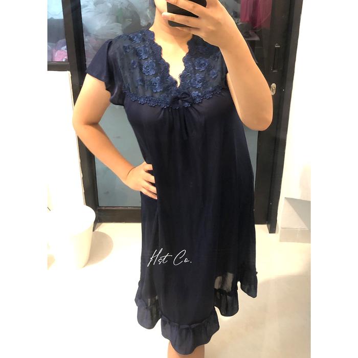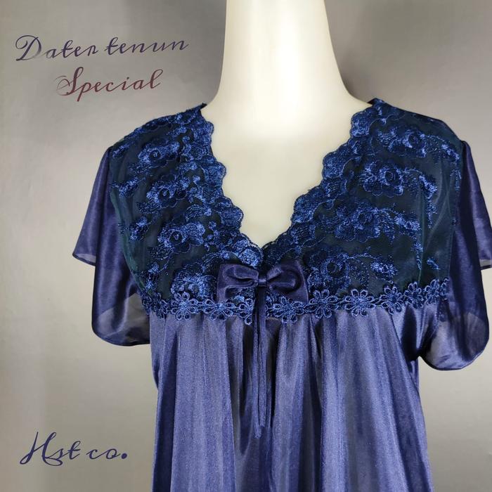 Terlaris (Sweet Garden Flower) Daster Tidur HST - Signature V-Neck Edition - Dongker Blue Keren
