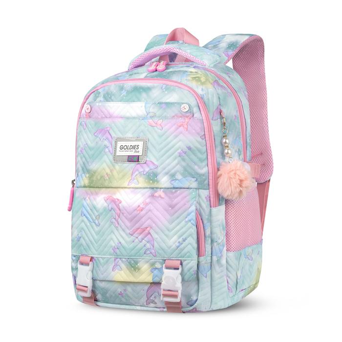 Terlaris g00ldIES Tas Ransel Sekolah Anak Import Tas Laptop 14inch Free Raincover + Gantungan Pompom - Biru Dolpin Keren