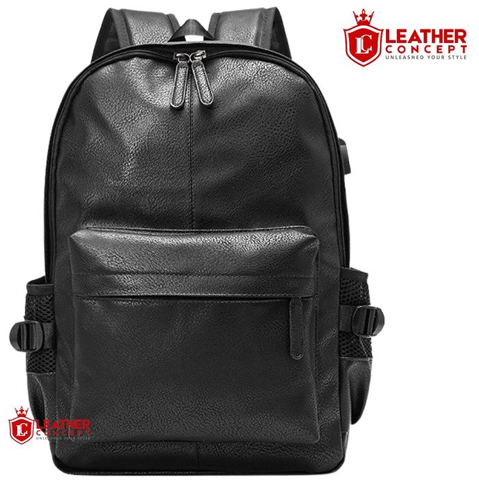 Murah Leather Concept TYCOON Backpack Cowok Tas Ransel Kulit hitam - Hitam Keren