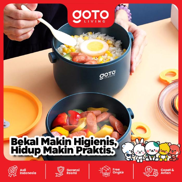 Promo Goto [] Venezio Kotak Makan Bekal Anti Tumpah Lunch Box Set Rantang Susun - 2s 1600ML Pink Elegan