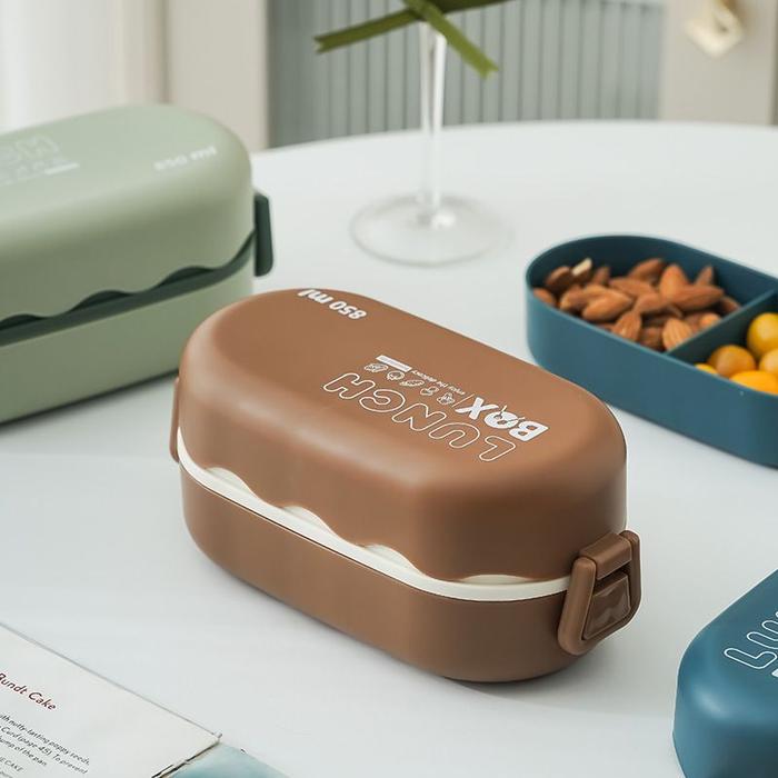 Terlaris Kotak Makan Bento Lunch Box 2 Tingkat Model Aesthetic 700ml & 850ml Sendok - 5659 BIRU 850ml Keren
