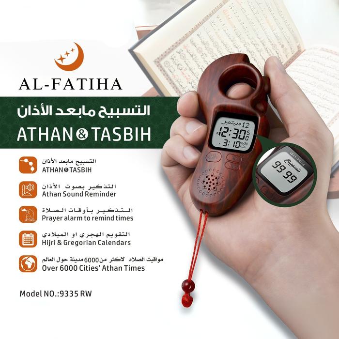 Terlaris Tasbih Digital Adzan Premium LED + Jam Digital Motif Kayu Alarm Muslim - Kayu Cokelat Elegan