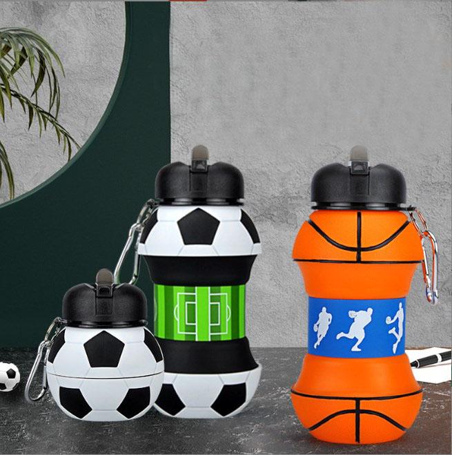 Promo Botol Minum Anak Lipat Silikon | Tumbler Minimalis Karakter Bola - Bola Sepak Elegan