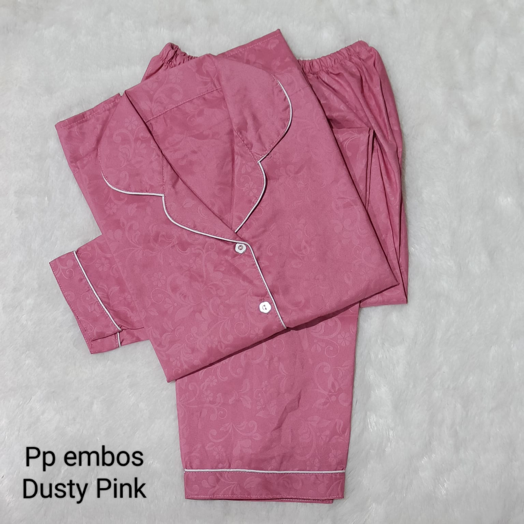 JNV Piyama PP Wanita Motif Satin Embos - Baju Tidur Lengan Panjang - Bahan Satin Embos