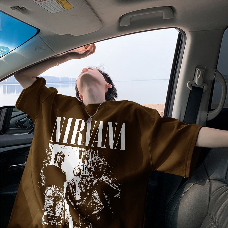 AUZY retro Amerika band rock NIRVANA kaos pria wanita T-shirt baju oversize t shirt distro