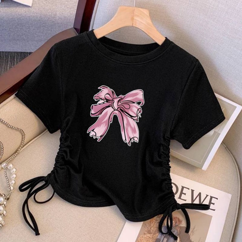 Baju Kaos Anak Baju Kaos T-Shirt Tali Serut Motip Tali Pita Anak Perempuan Usia 1-11 Tahun