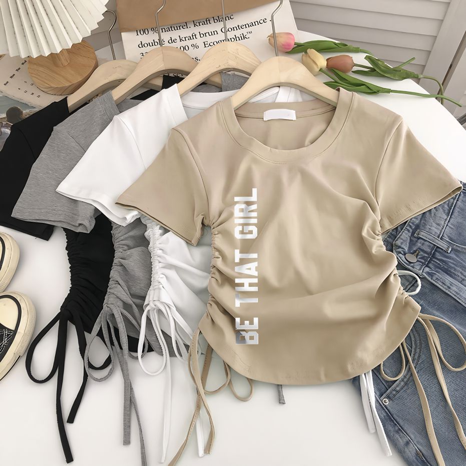 Baju Kaos Anak baju croptop anak perempuan atasan anak perempuan usia 1 - 12 tahun model tali serut pinggir bahan katun