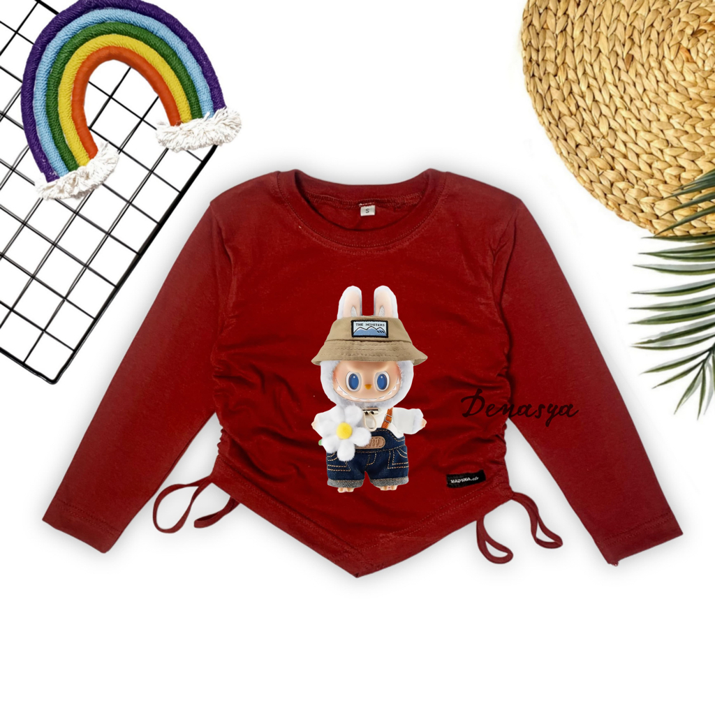 Baju Kaos Anak ATASAN KATUN ANAK PEREMPUAN / KAOS COMBED SERUT TERBARU / CROPTOP SERUT MOTIF SABLON USIA 1-12 TAHUN