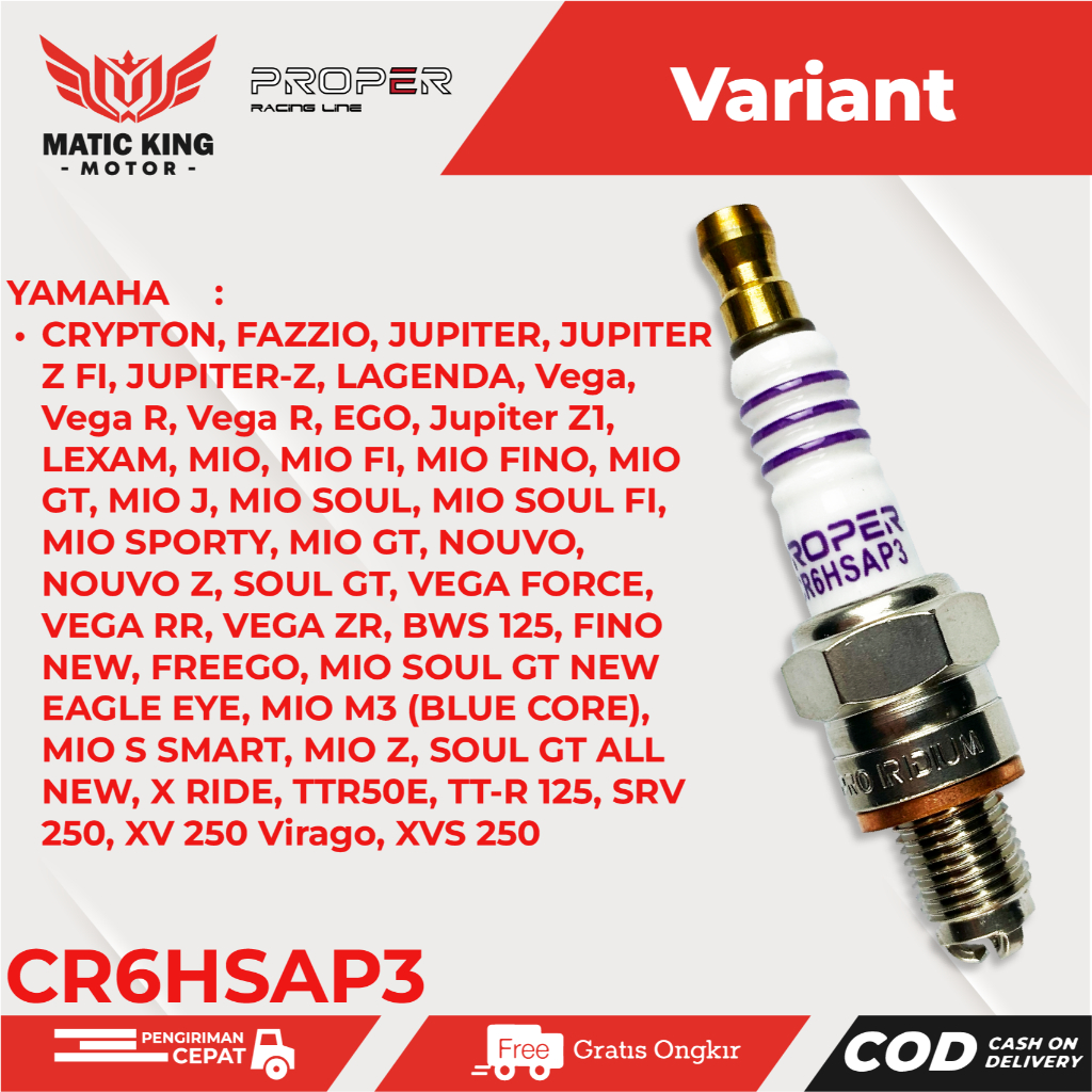 PROPER Busi Iridium Pro Spark Plug Mio Smile Sporty J M3 S Z Fazzio Filano Soul GT Jupiter Vega Fino Xride Nouvo Crypton
