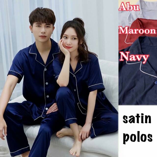 Paket stelan cp piyama couple satin exclusive silk pria dan wanita