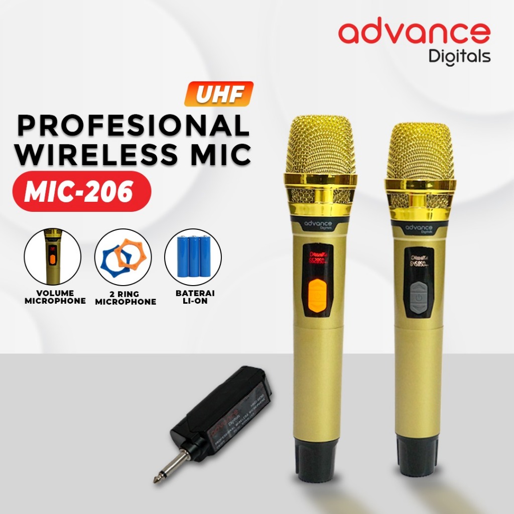 Advance MIC-206 Mic Wireless 2 in 1 LED Display Volume Control Independen Mic Karaoke Rechargeable
