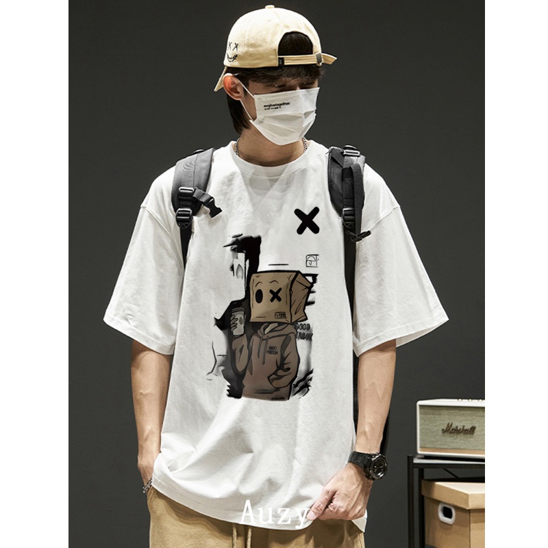 AUZY Kartun Cetak Gaya Hong Kong Trendi kaos pria wanita atasan Lengan Pendek T-shirt skena baju oversize t shirt distro original 100 PERSEN 8.15