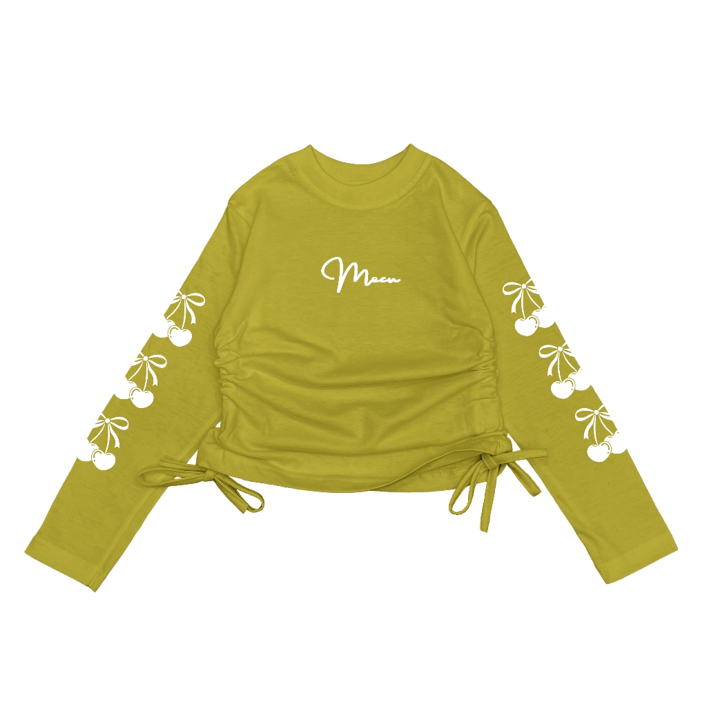 Baju Kaos Anak MECUKIDS Baju Kaos Crop Serut Anak dengan Motif HAND CHERRY Coquette - Usia 4 5 6 7 8 9 10 11 12 Tahun (L