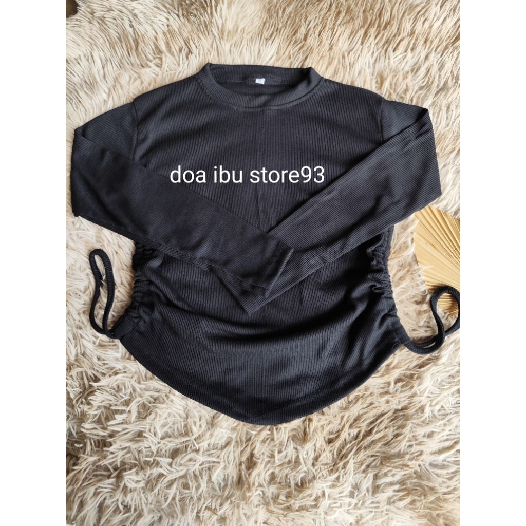 Baju Kaos Anak Vallen Top- Atasan Crop Anak Perempuan Tali Serut Samping Lengan Panjang 2-12Tahun