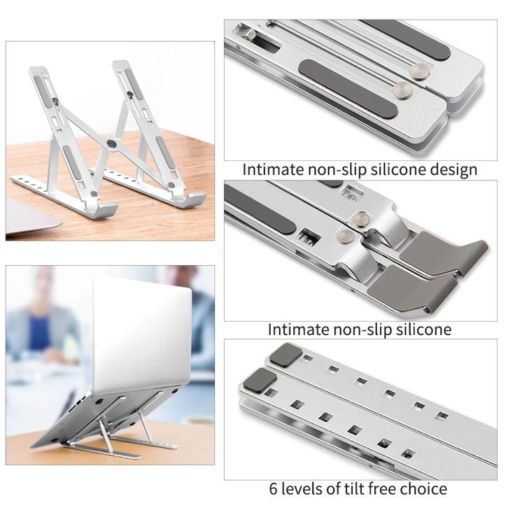 Laptop Stand Dudukan Laptop Aluminium Foldable Adjustable 6 Height - Silver