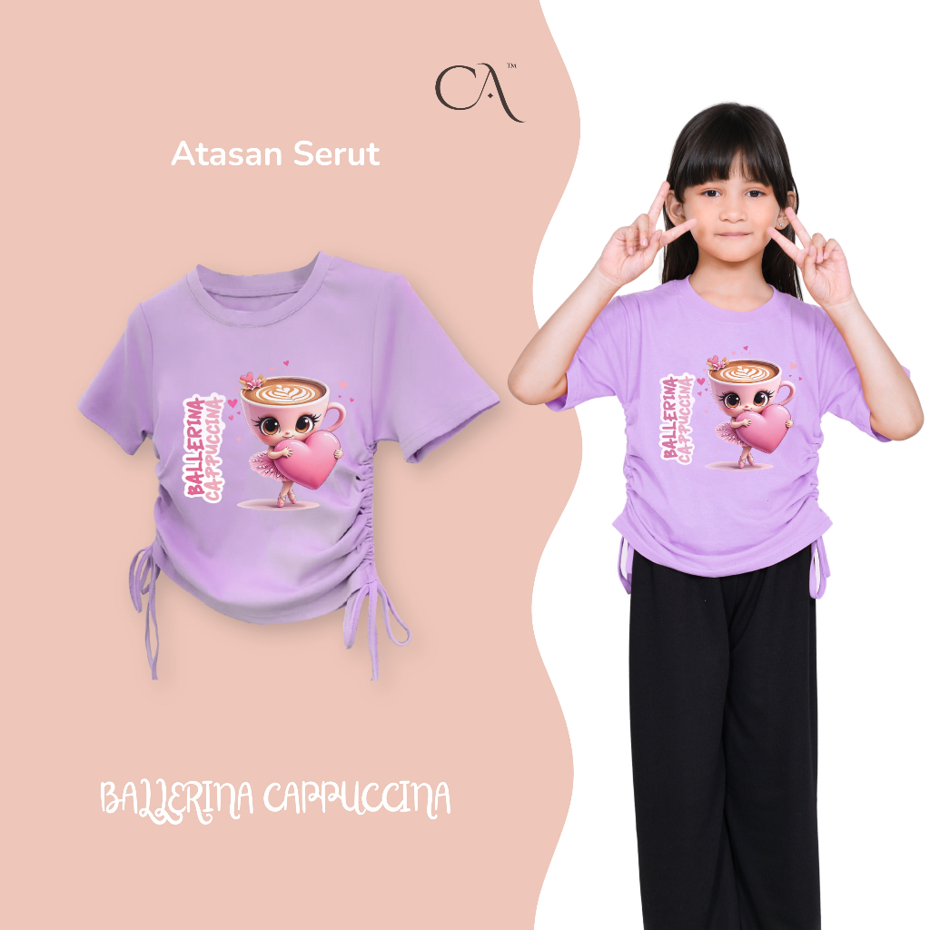 Kaos Serut Anak Kaos Serut Crop Top Anak Perempuan Kekinian Ballerina Cappucina Anomali | Atasan 1 - 14 Tahun Part 2