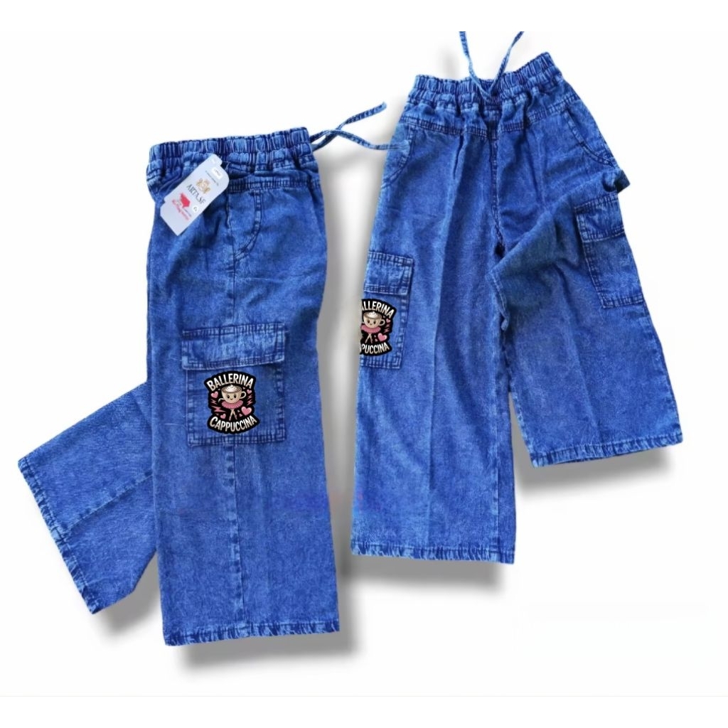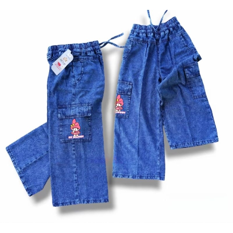 Celana Kulot Jeans Anak CELANA KULOT JEANS ANAK CARGO LABUBU KUROMI SANRIO CINNAMOROLL USIA 6-17 TAHUN
