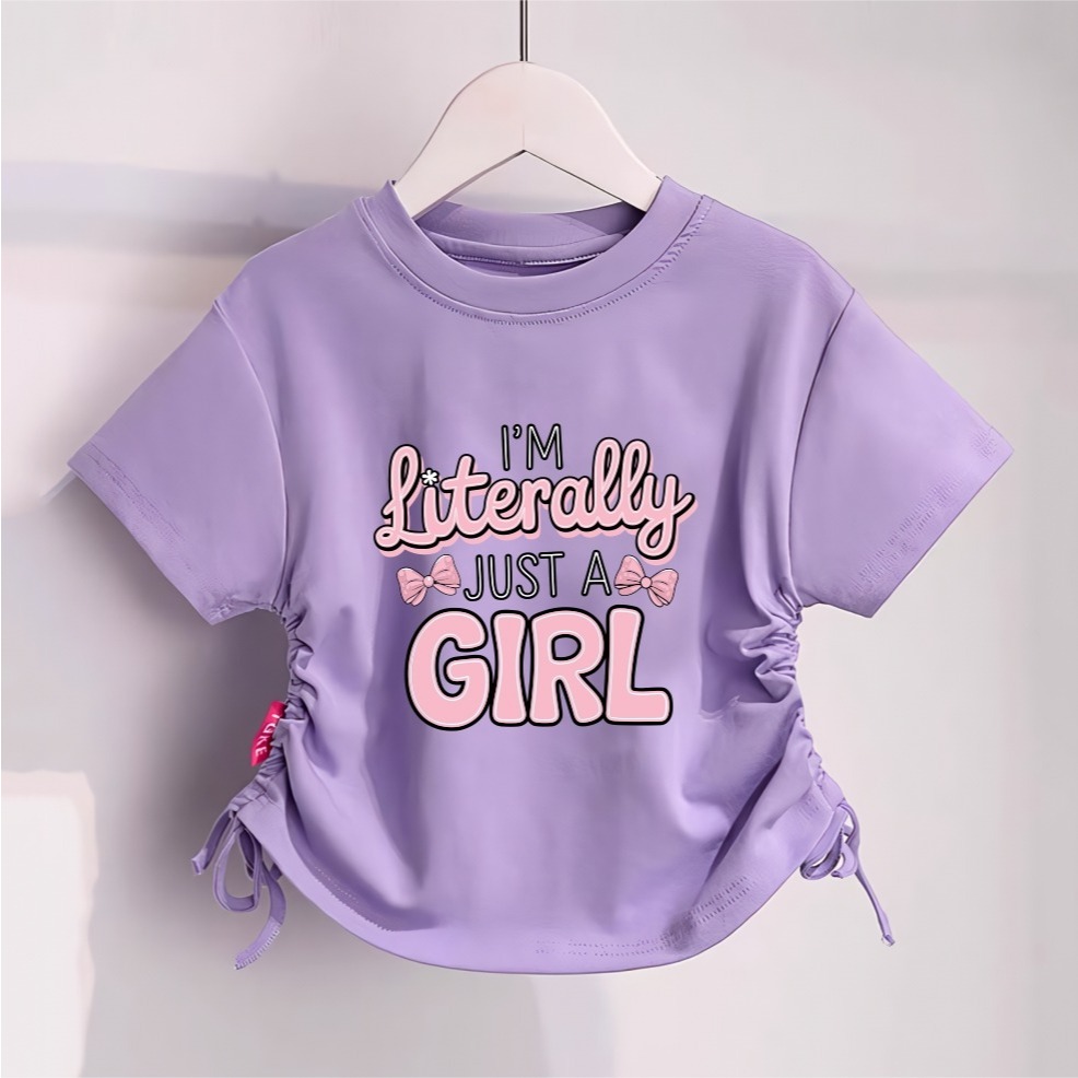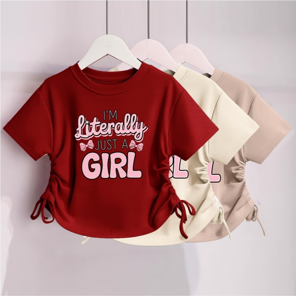 Baju Kaos Anak Baju Atasan Anak Cewek Fashionable Kaos Crop Anak Perempuan Tali Serut Usia 1 Sampai 12 Tahun