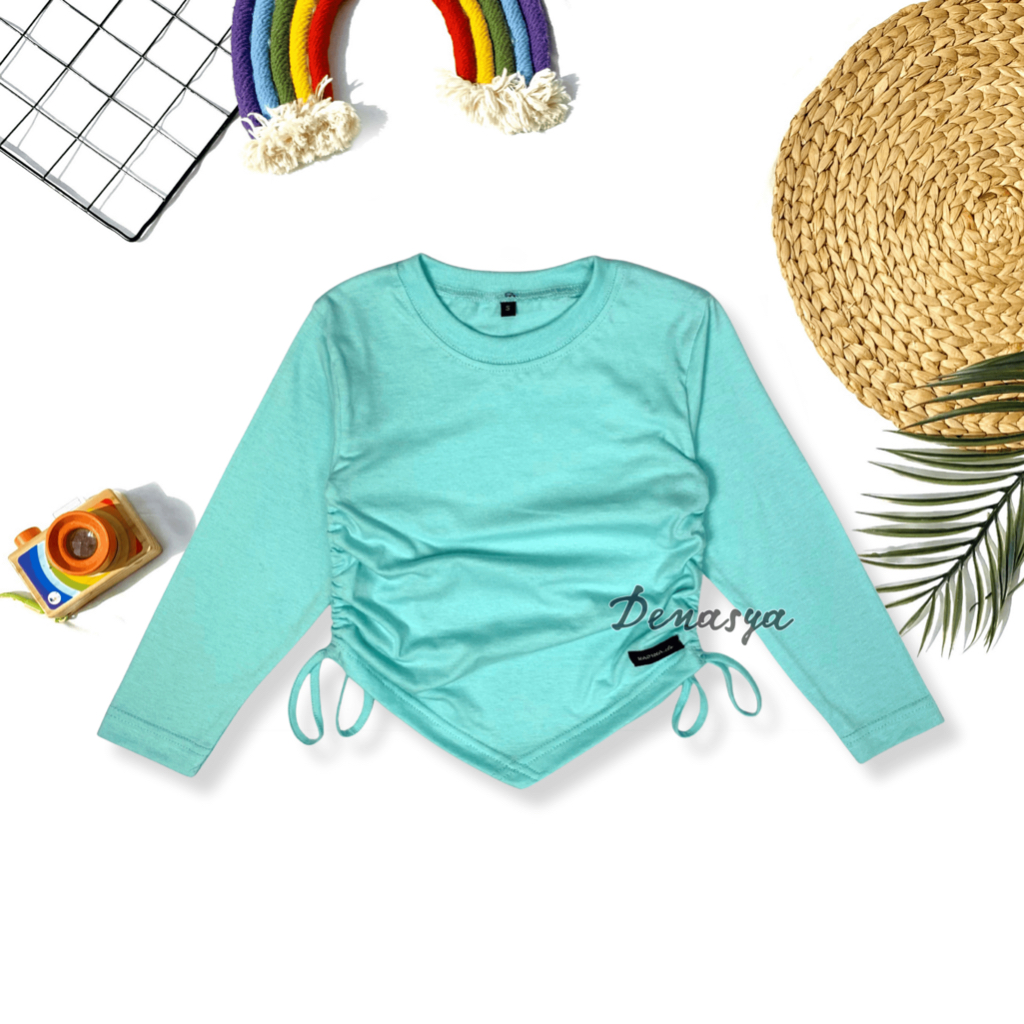 Baju Kaos Anak Atasan Lengan Panjang Anak Perempuan / Kaos Katun Serut Anak Kekinian / Baju Crop top Anak 1-12 tahun