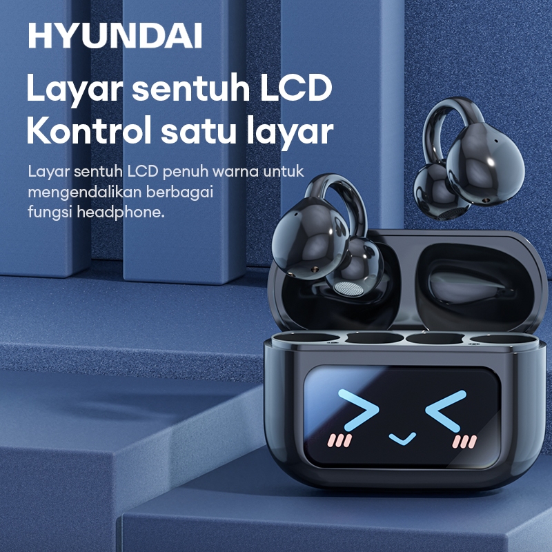Hyundai M100 TWS Earphone Bluetooth V5.4 Super AI LCD Smart Touch Screen Nosie Reduction Multi-Function Headset Bluetooth