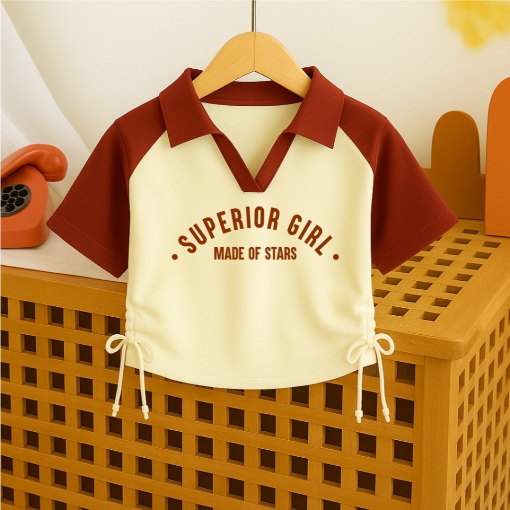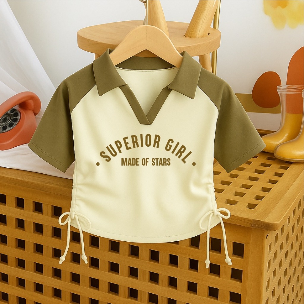 Kaos Serut Anak Kaos Anak Perempuan Usia 1-12 Tahun Superior Girl Model Kerah Warna Kombinasi Lucu Atasan Anak Cewek Kek