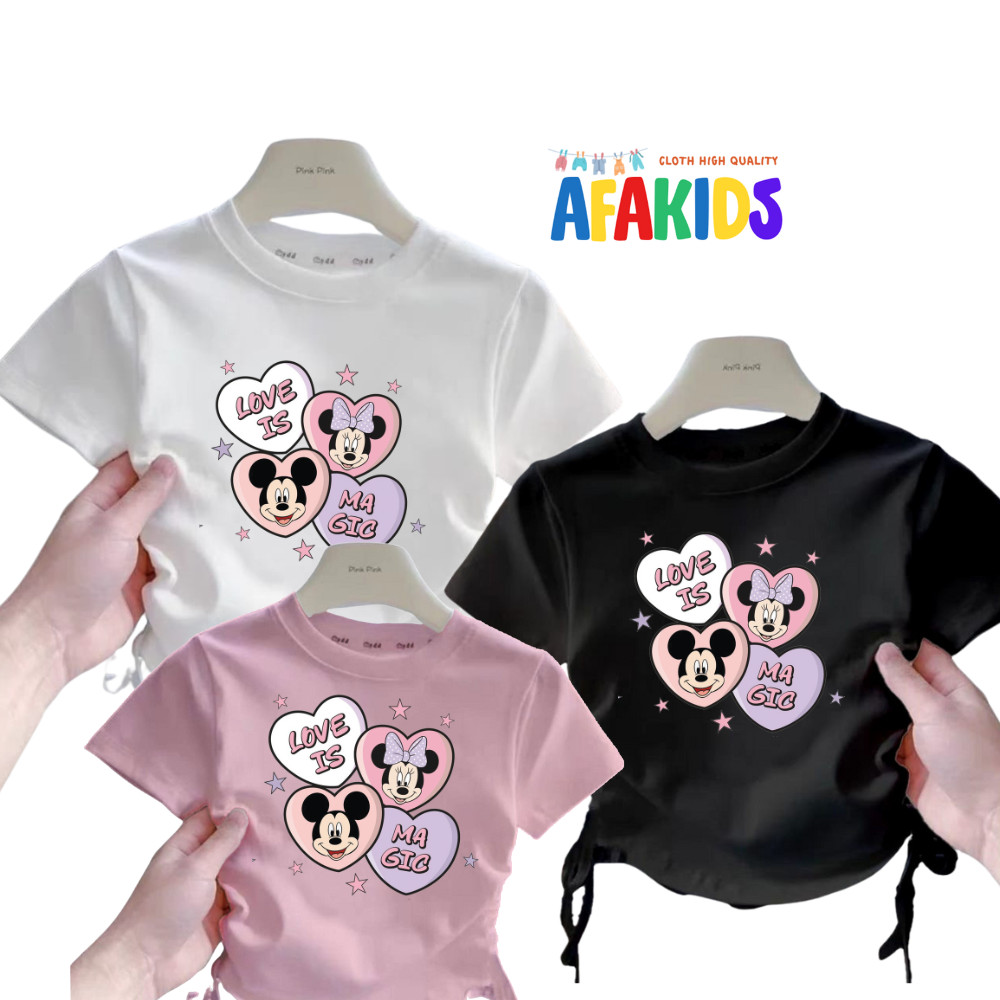 Kaos Serut Anak Afakids - Kaos Serut Anak Perempuan Atasan Mickey Love Magic Untuk Umur 1 - 10 Tahun Tali Pinggang