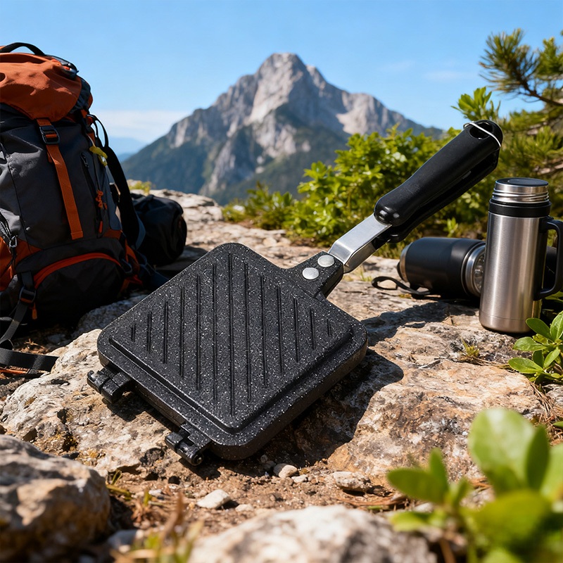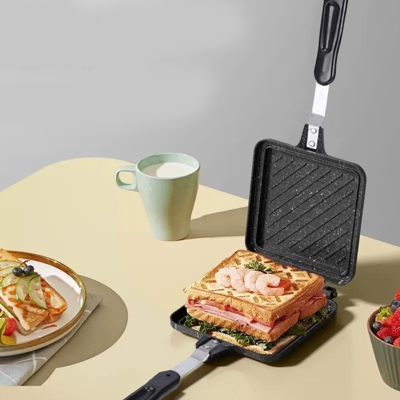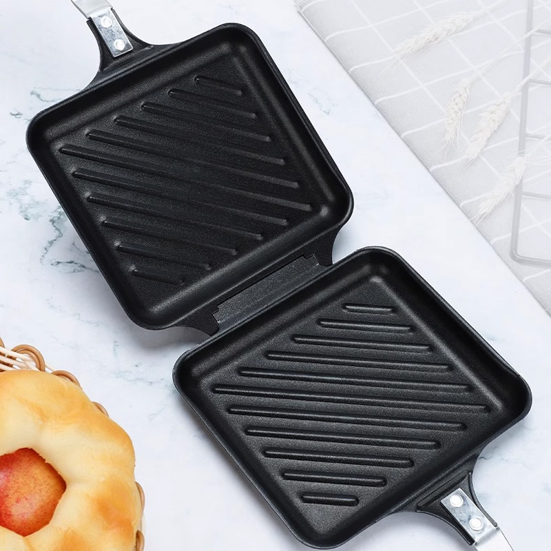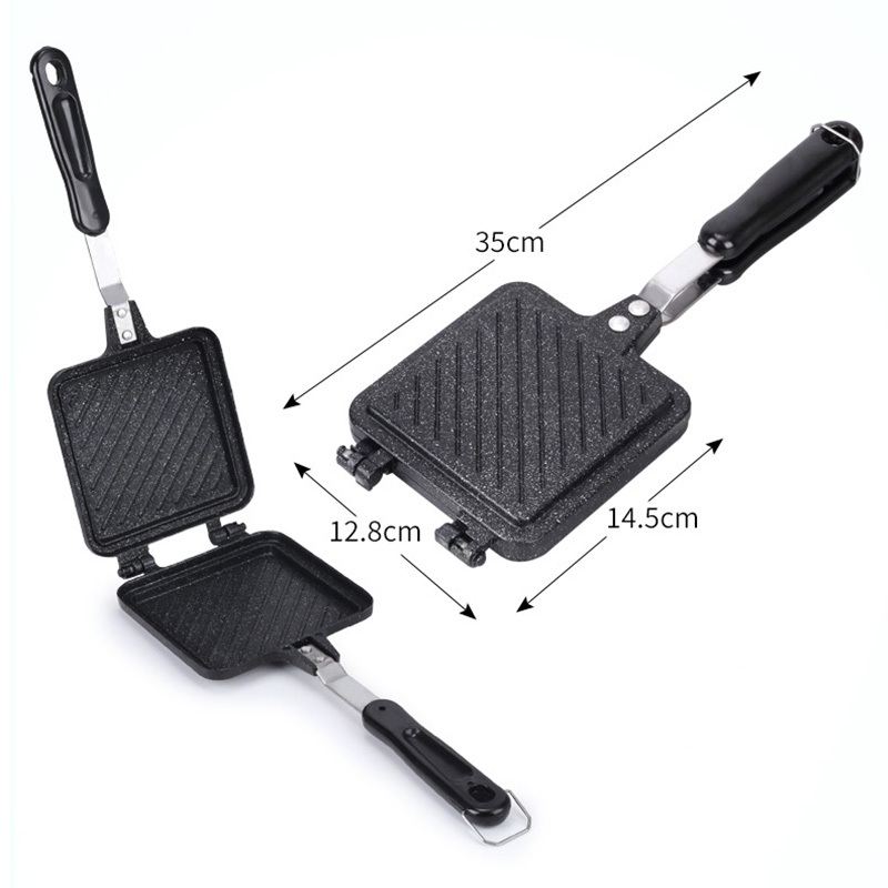 Wajan Panggang Sandwich Dua Sisi Anti Lengket Batu | Cetakan Roti Bakar Praktis Portable Camping