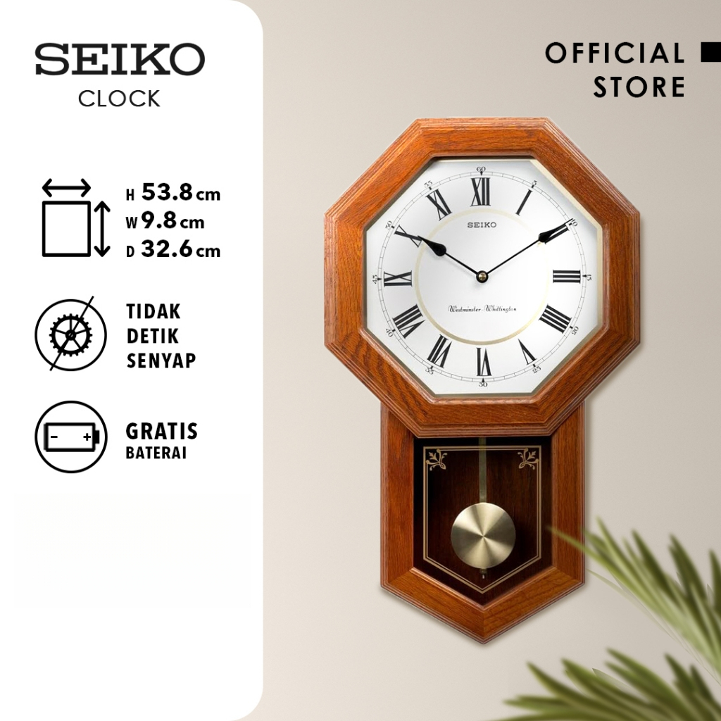 Jam Dinding Kayu Seiko QXH110B Dual Chimes Wooden Wooden case 32.6Cm Original