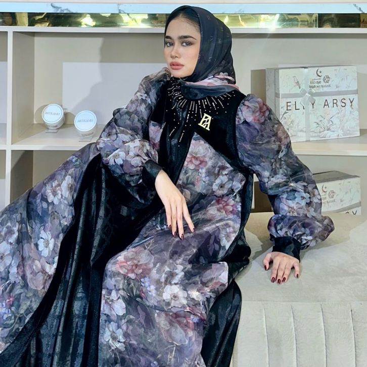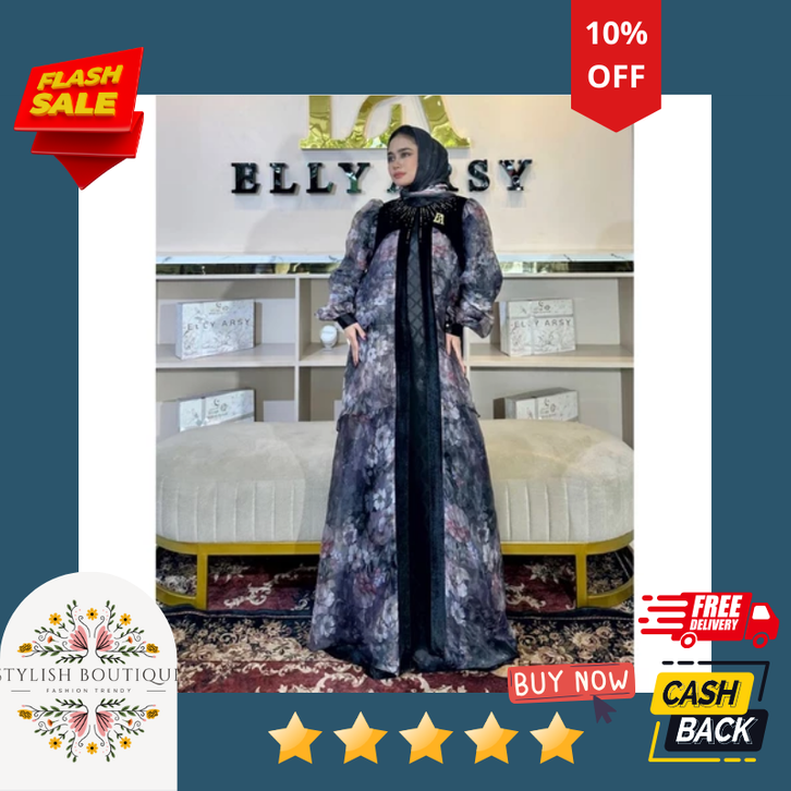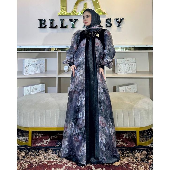 [Star] Gamis Lebaran Elly Arsy Qaireen Dress Material Silk Sutra Embos EA Organza Full Pattern EA Beludru Aksen Payet