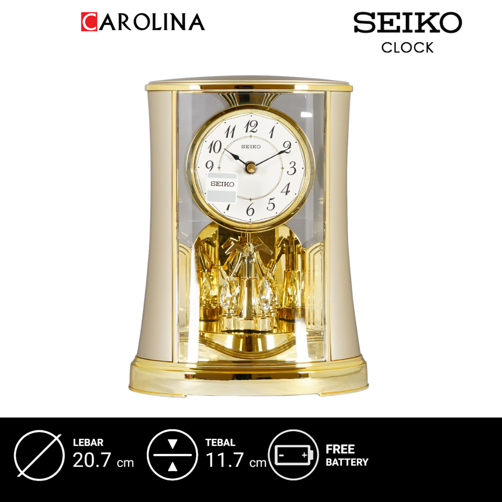 Jam Beker QXN227G SEIKO QXN227G Analog Rotating Pendulum ld Finish Plastic Case White Dial Desk & Table Clock