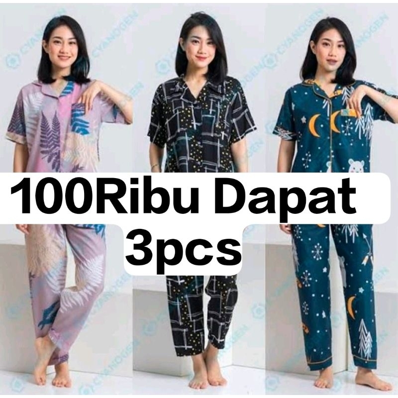 Setelan Piyama Baju Tidur Wanita Kekinian Paket Hemat Dapat 3 Setel